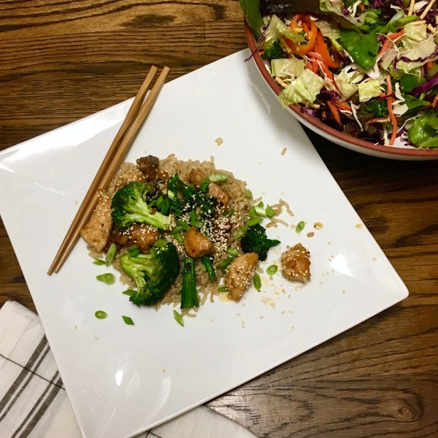 No need to order take-out, you can create this in your own kitchen in no time. I like to use some heat in my version, but if that is not for you or your diners, you can easily eliminate some of the chile and not compromise on the flavor. I have featured two options for serving this chicken with asian noodles (find the recipe here for the noodles), or you can serve over brown rice with the addition of broccoli. You can always double the sauce if you are serving over rice ( my kids always love the extra sauce)..