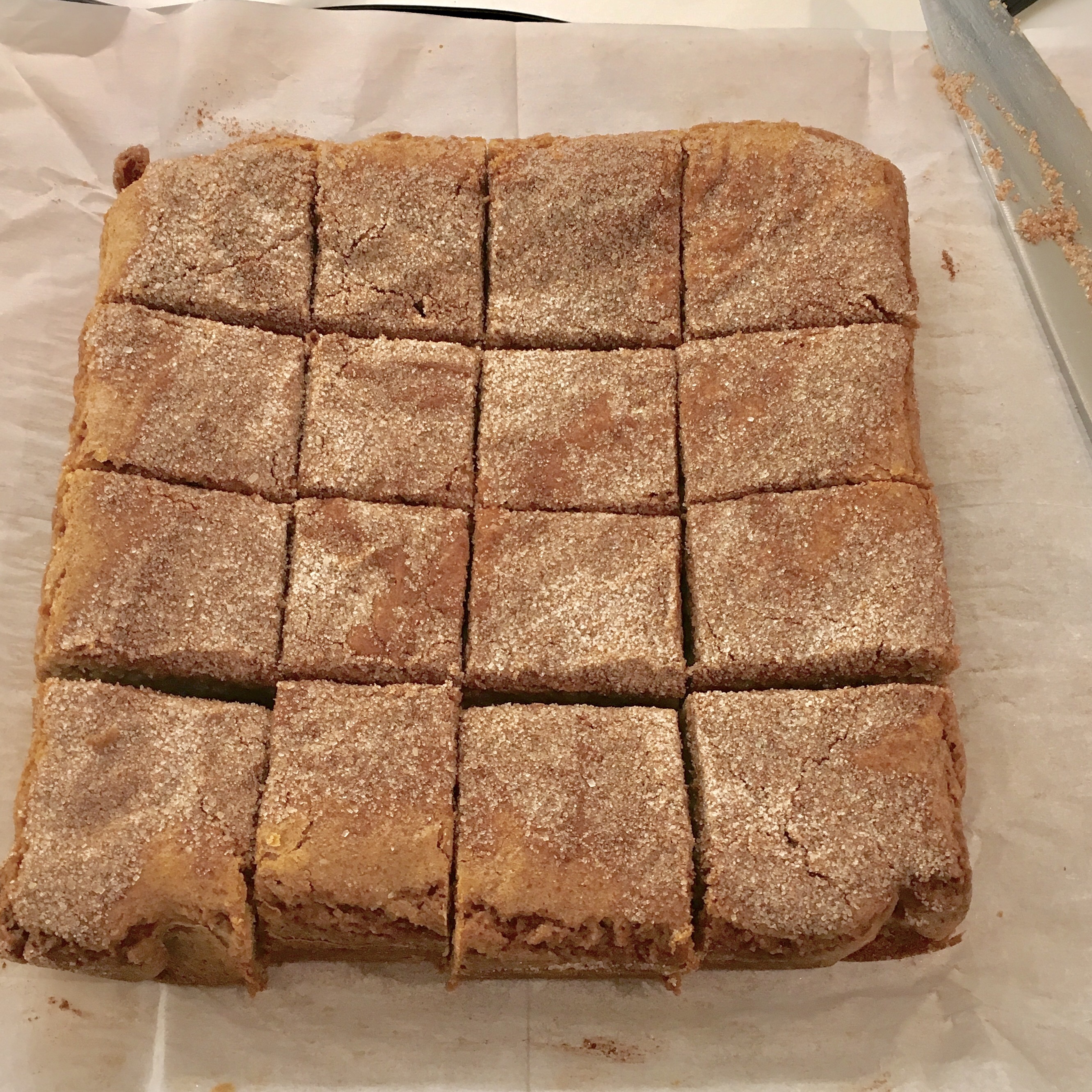 This recipe could not be easier and more delicious. You can make them without a mixer in one bowl ( I melted the butter in the same bowl that I mixed the batter). I used an 8 x 8 pan, rather than a 9×9 pan. I baked them for 30 minutes at 325 on convection setting and they were just right, but if you like your brownies underdone you could go a little less. I always use Penzey’s vanilla and cinnamon in my recipes as I think the flavor is much better than the supermarket brand. Add these to any holiday table or just to make the world a sweeter place!
