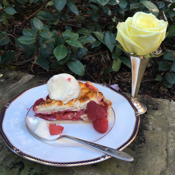 This is a great way to spread the love ! The tart filling of golden opal apples and raspberries are not only delicious but beautiful. I used almost the same pie crust as suggested in the recipe (Martha Stewart’s pâté brisé is excellent), but I substituted a couple tablespoons of vodka for some of the ice water which adds an extra flakiness to your crust. I also used an extra apple in my mixture as well for a more generous filling and more like 2 cups of fresh raspberries. I used a few smaller hearts in combination with the medium-sized ones, but you can use whatever size you like. I found that baking the bottom part of the crust helped to insure a superior bottom crust. Be sure to serve up a slice of love with some ice cream !