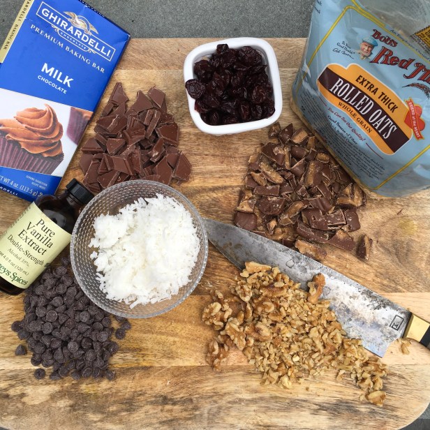 I LOVE these cookies and they must be healthy as they include all the major food groups! The flavors meld together for a delicious textured combo of tart and sweet. I recommend using the extra thick rolled oats (Bob’s are my favorite) which are much more wholesome.