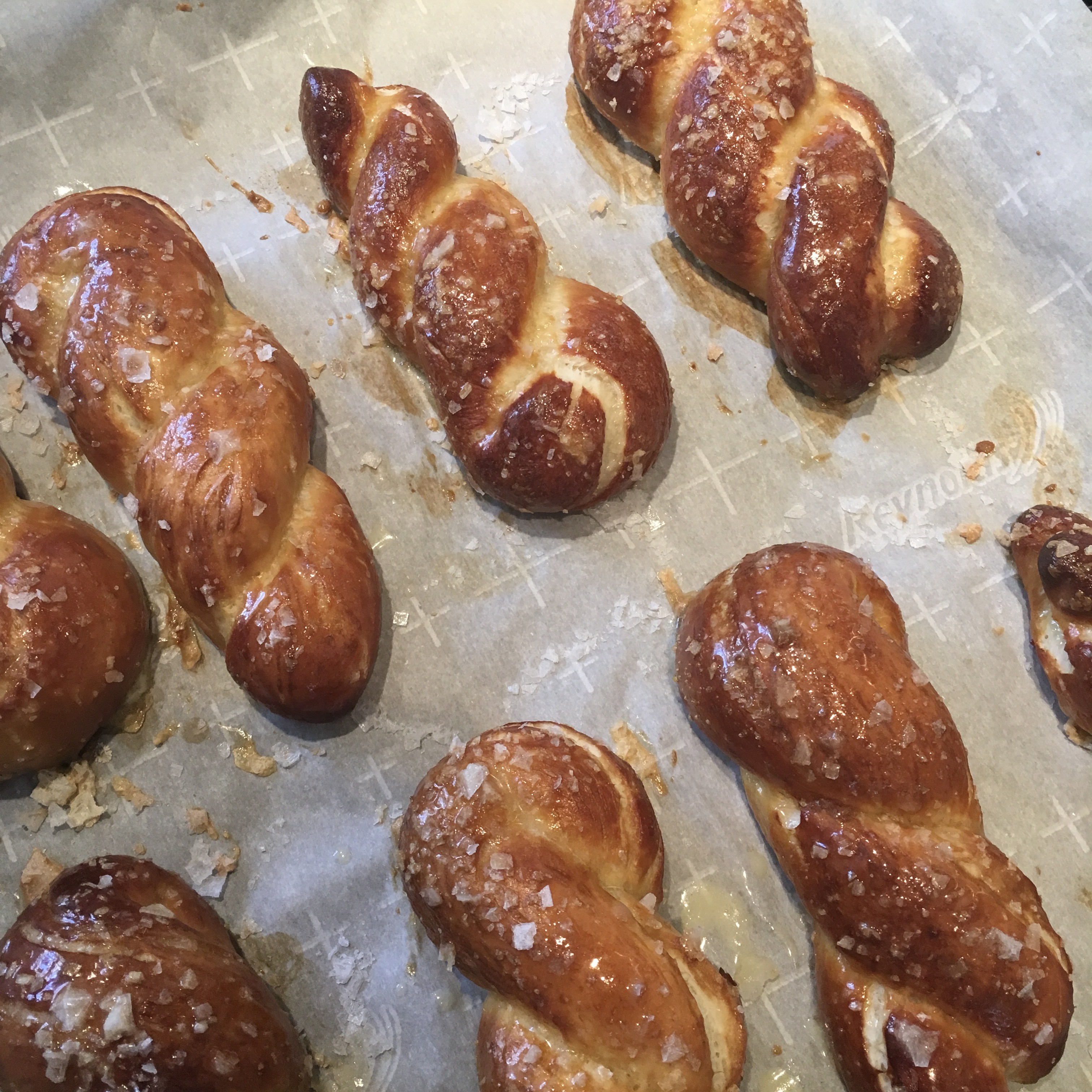 This is a delicious recipe and these returns will be gone more quickly than you can bake them. They are great as a snack on their own, or dipped in a honey mustard dipping sauce with a nice cold beer. I used a little Maldon Salt sprinkled on the top that I added just before baking.