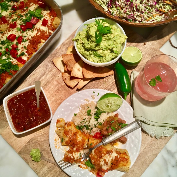 Served with cilantro rice, borracho beans, Avocado -cilantro coleslaw and of course a margarita!