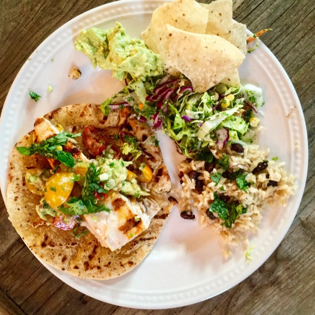 Tacos are delicious any time and when you have access to great fish, it is a great opportunity to serve a healthy, delicious meal. If you don’t have mahi-mahi , select any fish that is a bit steak-like, swordfish would work wonderfully as well. Serve with this fresh tomato pico, black rice, some slaw and guacamole and make your family happy!