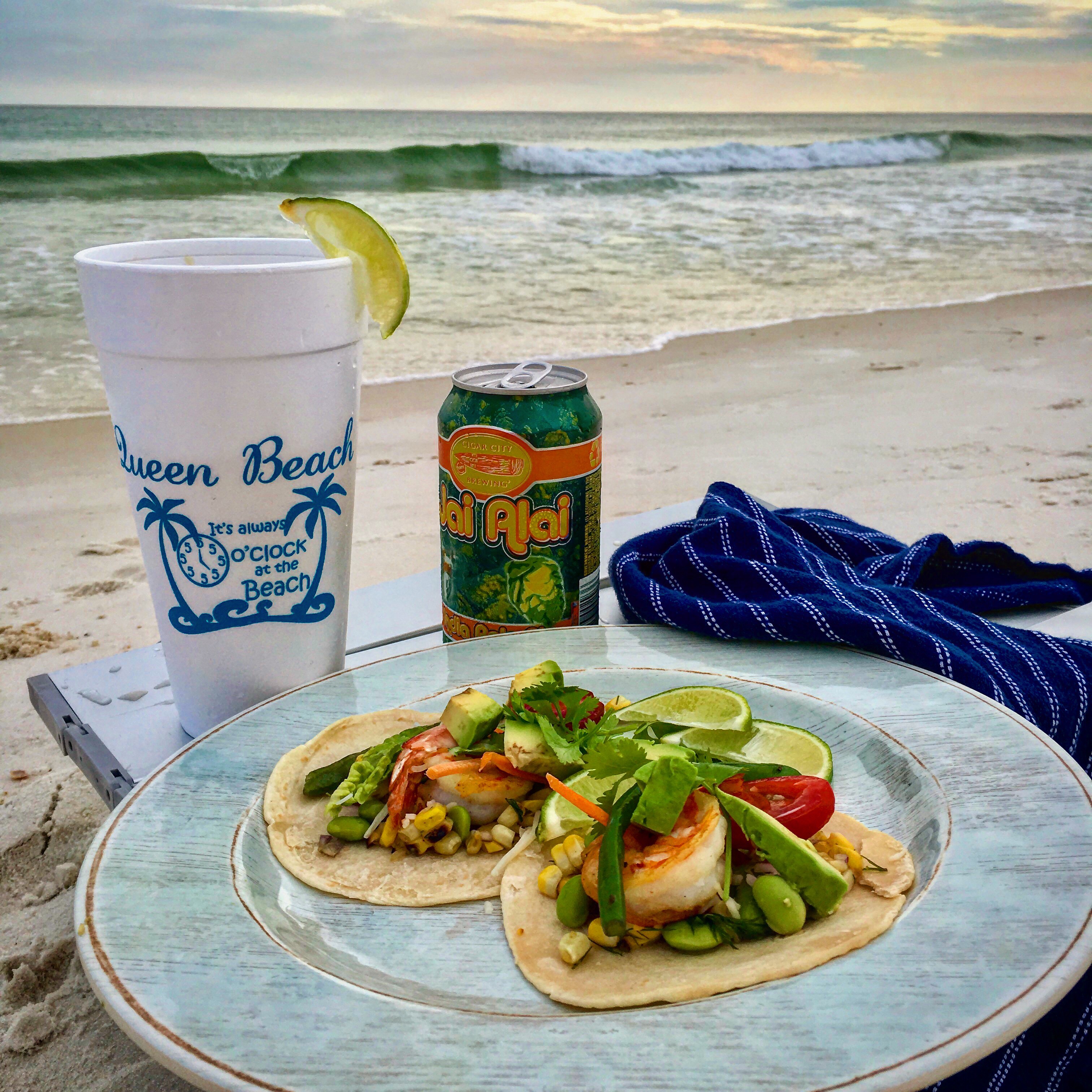 While this setting in Watersound Beach can make almost any cocktail hour close to perfect, these simple gulf shrimp tacos really help to make the experience wonderful. I found these minortillas at a local eatery here on 30A, and thought they were just ideal for these bite-size appetizers. If you can’t find the smaller size, you could easily use a biscuit cutter to cut out a 5″ circle or create a smaller size (a bit wasteful, but you could always use the extra to bake baked tortilla strips for a salad).