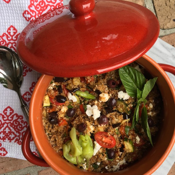 I love a flavorful side dish that pairs well with fish, chicken or beef and makes use of beautiful summer veggies. This recipe has wonderful earthy flavor derived from the bulgur wheat and an assortment of vegetables tossed in with fresh squeezed lemon juice and olive oil. The feta adds a hint of creaminess, but if you want a vegan version, simply eliminate the feta.