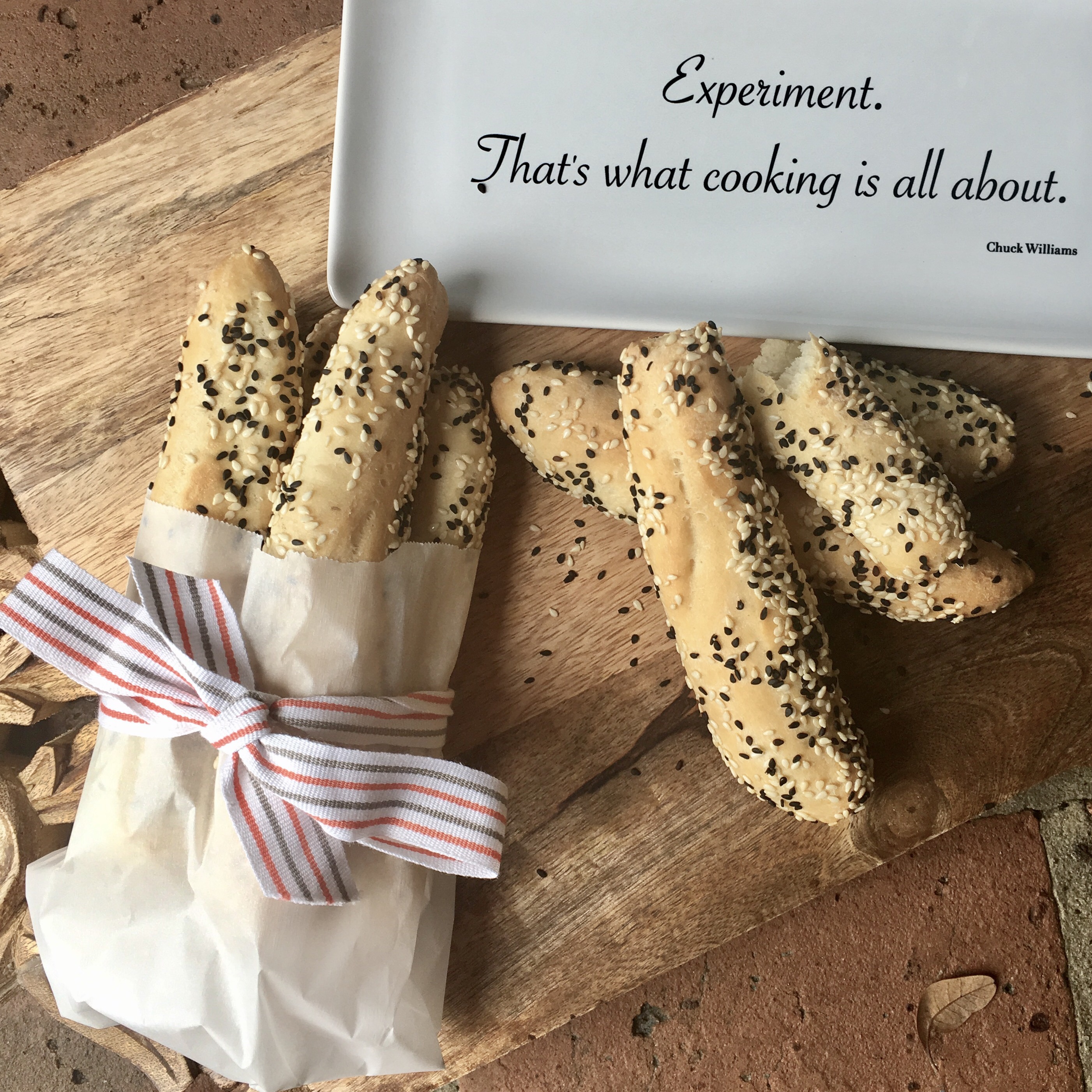 Few things smell better in the kitchen then bread rising and baking in the oven. This simple recipe is a great way to enjoy some homemade bread and the taste of sesame which I just love. You can serve them on a cheese plate, alone or alongside any meal.