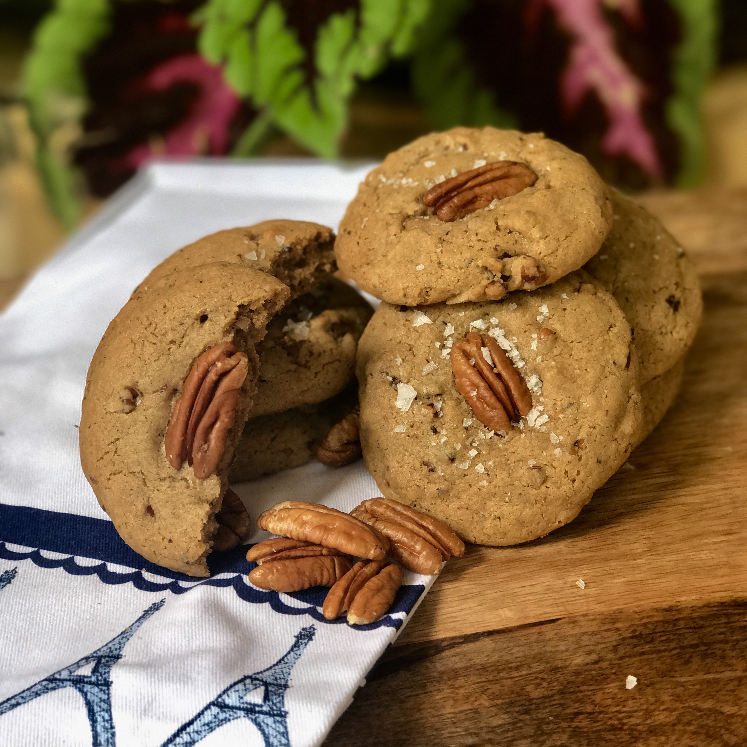 I love a new cookie recipe and these buttery, nutty and Chewy cookies with browned butter are sweet and delicious. I changed the sugar ratio by increasing the dark brown sugar to 1/4 cup and reducing the white sugar to 1/4 cup as I think it yields a chewier cookie and more richly flavored cookie and lowered the baking temperature to 325 on the convection setting.