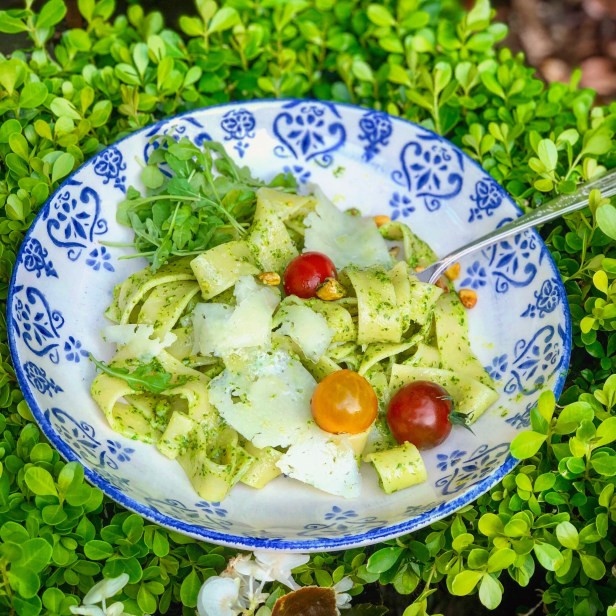 Pasta, vegetarian Pappardelle with Arugula-Pistachio Pesto Date: April 24, 2018Author: maroscooking 0 Comments A delicious blend of spring flavor and color that is simple to prepare, healthy and delicious. I used Manchego rather than parmesan and added a tablespoon of white balsamic vinegar reduction to contrast with the peppery arugula. Share this: Email a link to a friend (Opens in new window) Email TweetLike Loading... Related