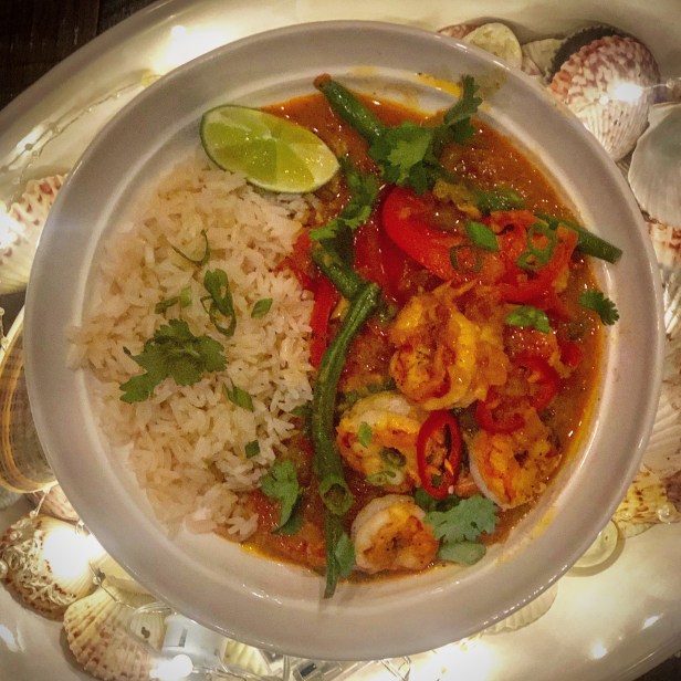 When back in Florida, I am always looking for great recipes to complement all the fresh seafood. For this recipe, I used Royal Red Shrimp, which are found deep in the gulf and slightly sweeter than regular shrimp, however, any variety would work well. I love the simplicity of this recipe that has amazing curry flavor and tastes so delicious with fresh gulf seafood and comes together quite quickly. You can adjust the amount of curry and by garnishing with Fresno chilis, you can adjust the heat level as well. If you are not a seafood lover, this sauce would be great with chicken as well.