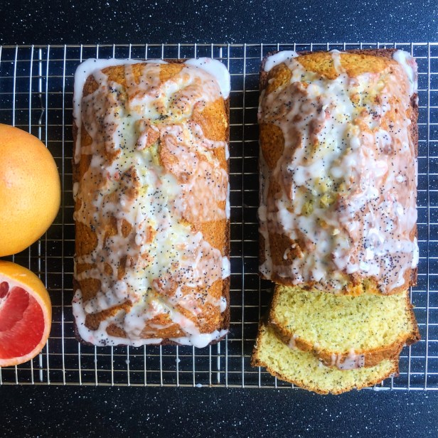 Preheat oven to 350 degrees. Spray an 8-inch loaf pan with cooking spray. In a bowl, combine grapefruit zest with sugar and stir to combine. Whisk in buttermilk, grapefruit juice, eggs and oil. In a separate large bowl, whisk together flour, poppy seeds, baking powder, baking soda and salt. Pour wet ingredients into the flour mixture, and stir to combine well. Divide batter evenly into prepared pans and bake loaves until a toothpick inserted in the center comes out clean (between 50-60 minutes). Allow bread to cool for about 10 minutes before inverting onto a baking rack with a piece of parchment paper underneath rack. Make the glaze by whisking together the confectioners’ sugar and grapefruit juice in a measuring cup. You can add a little extra juice if glaze is too dry. Drizzle glaze evenly over loaves allowing it to drip down the sides and using a pastry brush to distribute as needed. Allow to cool completely before slicing. Enjoy!