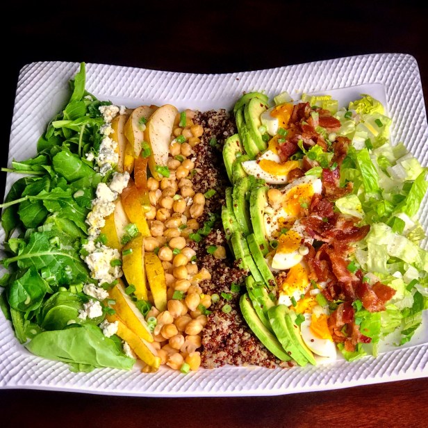 If you have followed my blog, you are probably aware that I love salads.  I am by no means a vegetarian, but I love to include a good salad with every meal.  Often times, when there is meat as an entrée, I also serve a really wholesome salad as I love all the color and variety you can include in a hearty salad.  I happen to love gorgonzola cheese, half of my family does not care for it and I know it is not popular with everyone.  You could very easily substitute feta or goat cheese if you don’t count yourself as a blue cheese lover!  Make your quinoa ahead allowing it time to rest and steam as it sprouts and becomes fluffy as it steams.  If you prefer a simple vinaigrette, simply eliminate the mayonnaise from the dressing.  I think a little creaminess in the dressing really elevates the whole salad.  Finally, don’t underestimate the power of a beautiful presentation…while this salad would taste just as good all tossed in a bowl, by lining up all the ingredients, it is so visually appealing and allows your diners to see all the delicious components.