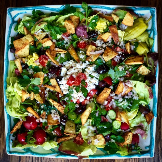 A great way to introduce a little mediterranean flair into your salad. I love the crispy pita that adds great crunch and lots of fresh parsley to add a bright herby flavor and color to this salad. I included lots of mediterranean accents to take this salad from the ordinary to the special and a light dressing of fresh lemon and olive oil is so simple, but so fresh. You could also add a handful of chickpeas to the salad for extra protein.