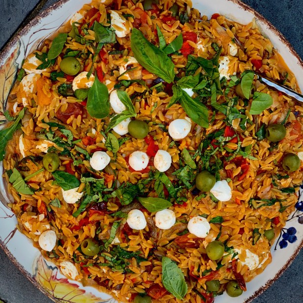 Orzo is such a great host for so many flavors. It is a cross between rice and pasta and I love it as a side dish for a buffet. If you have made orzo before, I think the best way to make it is to toast it before adding the liquid. This helps maintain the integrity of its shape and prevents it from getting too mushy during the cooking process. The red peppers add a natural sweetness to the dish that is a perfect complement and add beautiful color along with the greens.