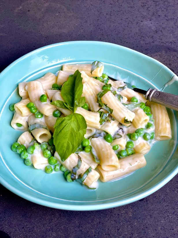 This decadent and simple rigatoni is a delicious way to enjoy your pasta. The bright peas are so good with the creamy sauce and some fresh basil is a lovely finish. I love to use whole milk and although we are all weight conscious and don’t want to overload in fat, it does make a difference i. This recipe as the creamy sauce is key to the dish. Serve it with some grilled chicken, if you are missing the protein and a green salad.