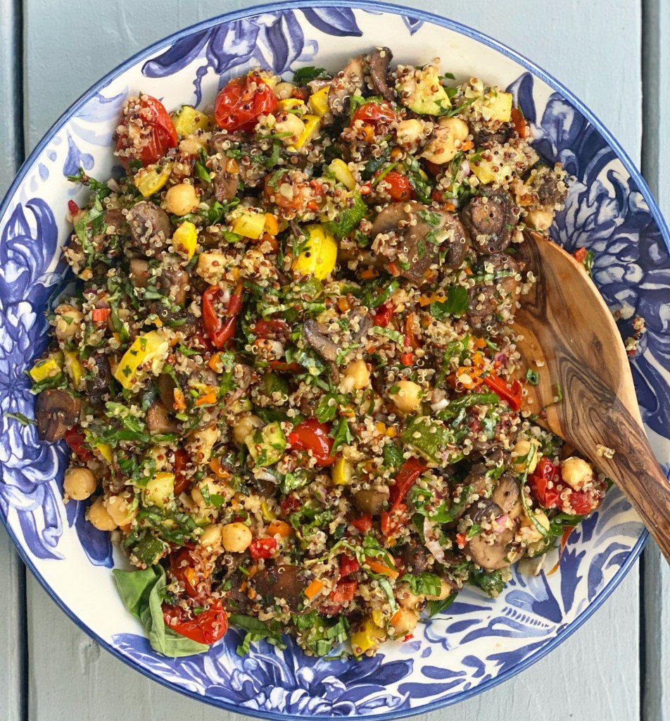 This is a wonderful healthy side dish. I love the mixture of cooked and fresh vegetables and lots of fresh herbs. This would be a great dish for a picnic. It can be made ahead snd transports easily!