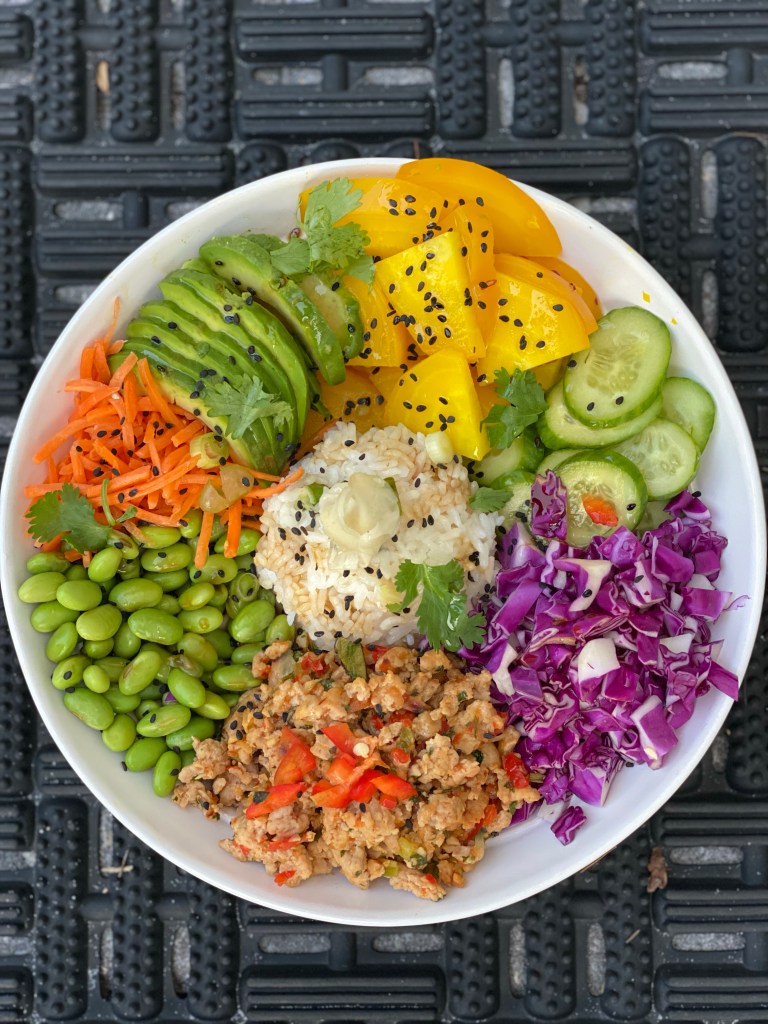 I’m always in search of a quick, easy, healthy dinner that doesn’t compromise on flavor. Using a bowl can help create the perfect portion size that appeals to the tastebuds and a beautiful presentation. If you are preparing a meal for kids or for people who don’t like the spice, just eliminate the chili garlic sauce. If you prefer it less sweet, than use fresh ginger root rather than pickled ginger. You can use any variety of vegetables that appeals to you and build your bowl with all of your favorite elements. It’s a great way to use up some leftover veggies as well.