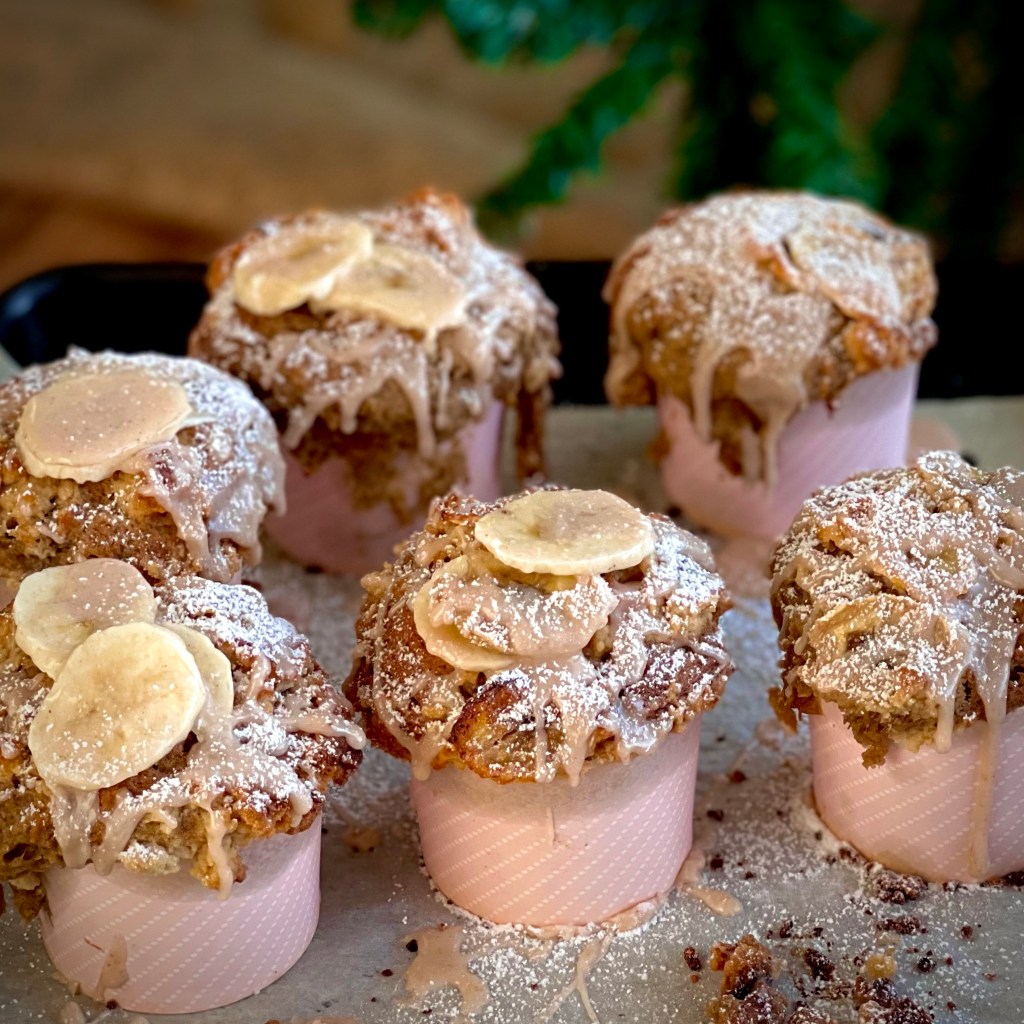 Straining the microwaved bananas and then reducing the liquid helps to develop a delicious and concentrated flavor. It is a bit more labor intensive but yields a great result. I have a few versions of this muffin. You could easily add blueberries or raspberries. Make sure you start with very well ripened bananas.