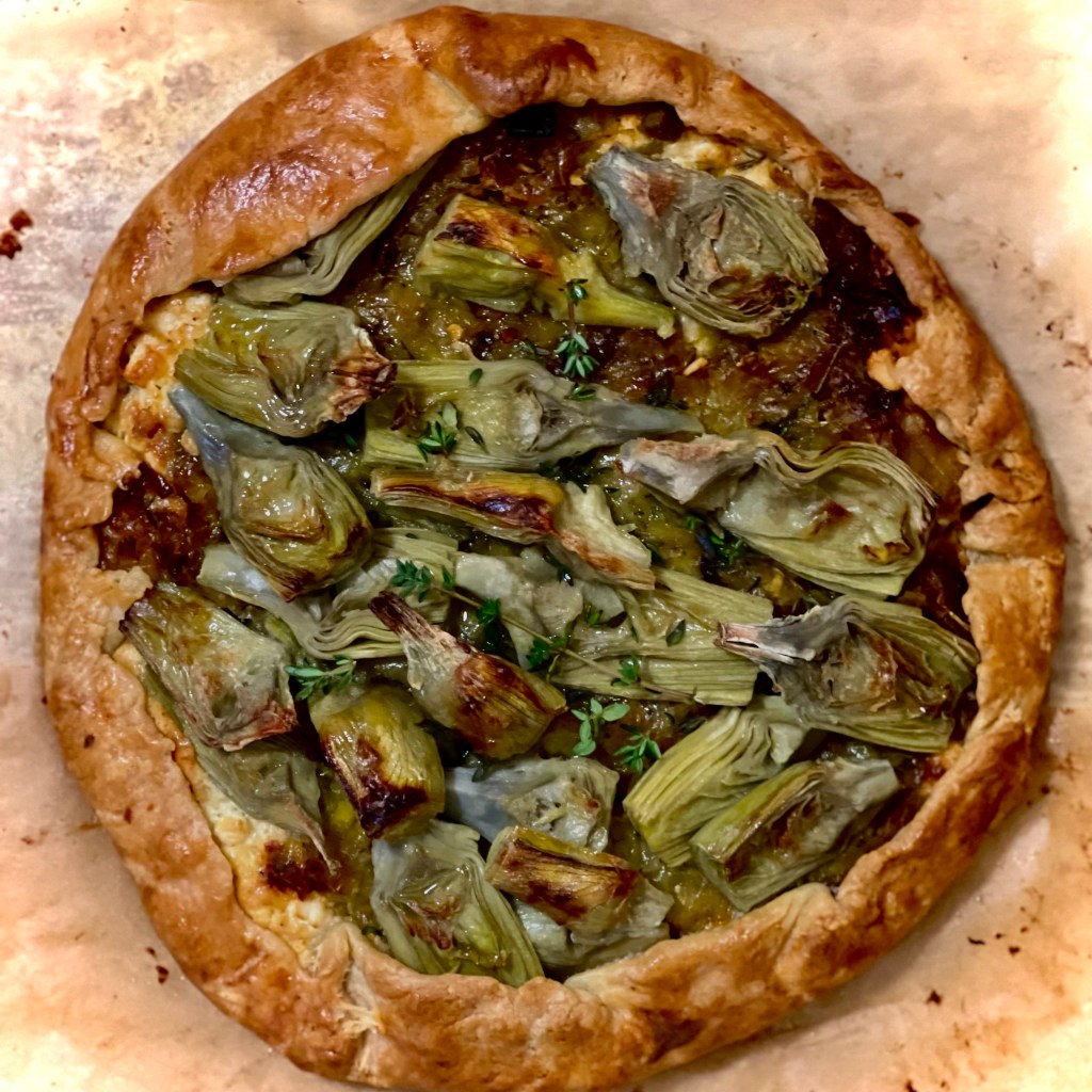 Love this vegetarian galette . It’s got great flavor with a crispy all butter crust. I like to add a bit of vodka in the crust which makes it extra crispy. If you don’t have vodka, you could substitute with white vinegar. I also love to use the frozen artichoke quarters. The canned ones work, but they have been soaked in brine whereas the frozen ones don’t have any flavor. I find mine at Trader Joe’s. The lovely part of this galette is it’s meant to look rustic and the edges don’t have to be perfect so it’s less intimidating than a pie.