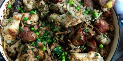 Main Course, Meat, Poultry Chicken Drumette and Sausage One Pan Dinner with Leeks, Mushrooms and Peas January 30, 2017 — 0 Comments