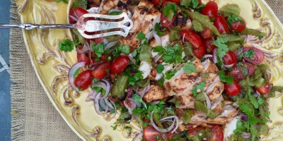Harissa Chicken with Green Chile and Tomato Salad