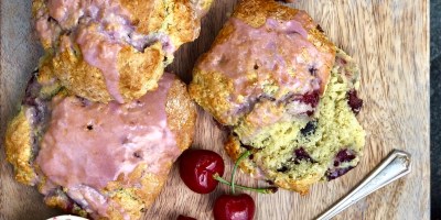 Breakfast, Dessert, Main Course, Uncategorized Cherry Almond Scones with Cherry Glaze and Cherry Compound Butter June 8, 2018 — 4 Comments