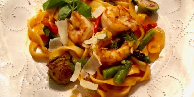 Main Course, Pasta, Seafood Vodka Roasted Red Sauce Tagliatelle with Gulf Shrimp, Fennel and Winter Vegetables January 3, 2018 — 4 Comments