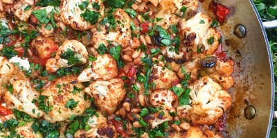 Pan Roasted Cauliflower with Pine Nuts and Raisins
