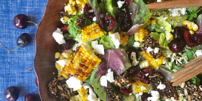 Stone Fruit Summer Salad with Feta and Roasted Shallot Vinaigrette
