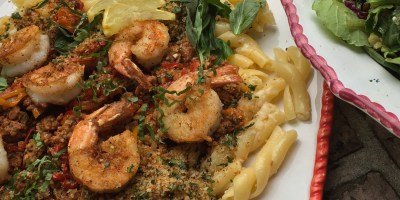 Main Course, Pasta, Seafood Pasta with Shrimp and Spicy Sausage-Leek Ragu April 25, 2017 — 2 Comments
