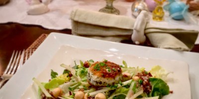 Spring Salad with Red Quinoa, Julienned Apple and warmed Goat Cheese in a Hazelnut Vinaigrette
