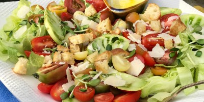 Heirloom Tomato Caesar Salad with Ciabatta Croutons