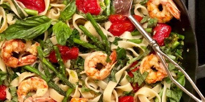 Main Course, Pasta, Seafood Very Veggie Tagliatelle with Seared Gulf Shrimp December 29, 2018 — 2 Comments
