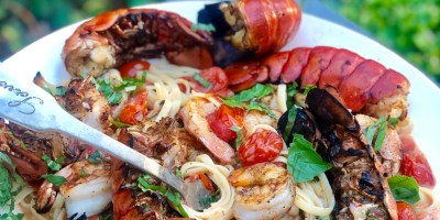Main Course, Pasta, Seafood Linguine with Grilled Lobster Tails and Shrimp in Creamy Tomato Marsala Sauce April 29, 2019 — 5 Comments