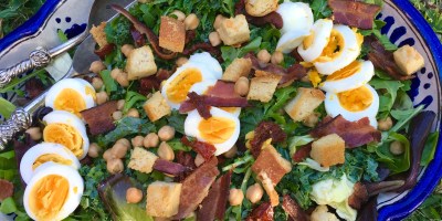Salads Mixed Green Salad with Eggs, Chickpeas, Sundried Tomatoes, Bacon-Parmesan Croutons and Maple Syrup Vinaigrette May 15, 2017 — 0 Comments