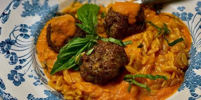Lamb Meatballs with Tomato Chickpea Orzo Pilaf