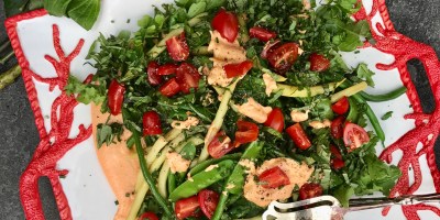 Salads, Side Dish Spring Vegetables on Creamy Roasted Red Bell Pepper Ricotta Feta Spread May 16, 2017 — 0 Comments