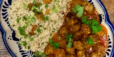 North African Meatballs in Saffron Tomato Sauce with Israeli Couscous