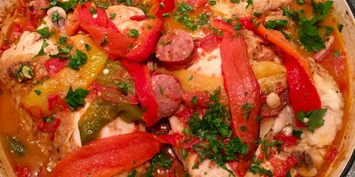 Main Course, Poultry Braised Chicken Breasts with Bell Peppers ,Sausage and Castelvetrano Olives December 10, 2019 — 1 Comment