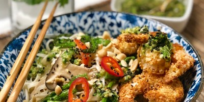Slow Cooker Asian Chicken with Chinese Long Beans and Veggie Ramen