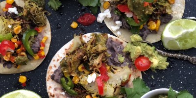 Main Course, vegetarian Roasted Cumin Brussel Sprout Tacos with Caramelized Corn Relish, Refried Black Beans and Salsa Verde February 13, 2018 — 0 Comments